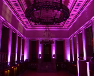 The right lighting can make a difference at your next event. Our team provides intelligent lighting solutions such venue lighting which lets you turn your next event into something special. Ask about our wireless uplights that can be customized to fit the venue or display your company colors.
