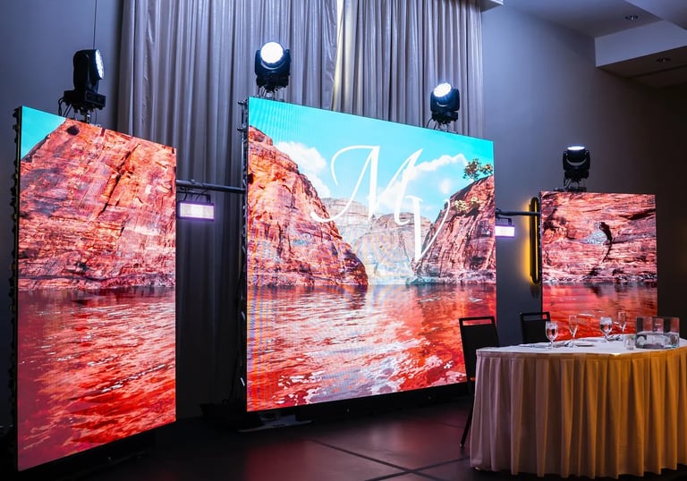 LED Video Walls to showcase photos, slideshows, or backgrounds to enhance the room experience.